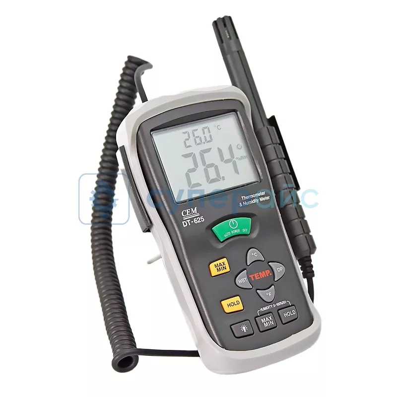 Комплектация | термогигрометр CEM DT-625 - 1 шт батарейка типа "Крона" - 1 шт сумка - 1 шт лямка - 1 шт руководство по эксплуатации - 1 шт |