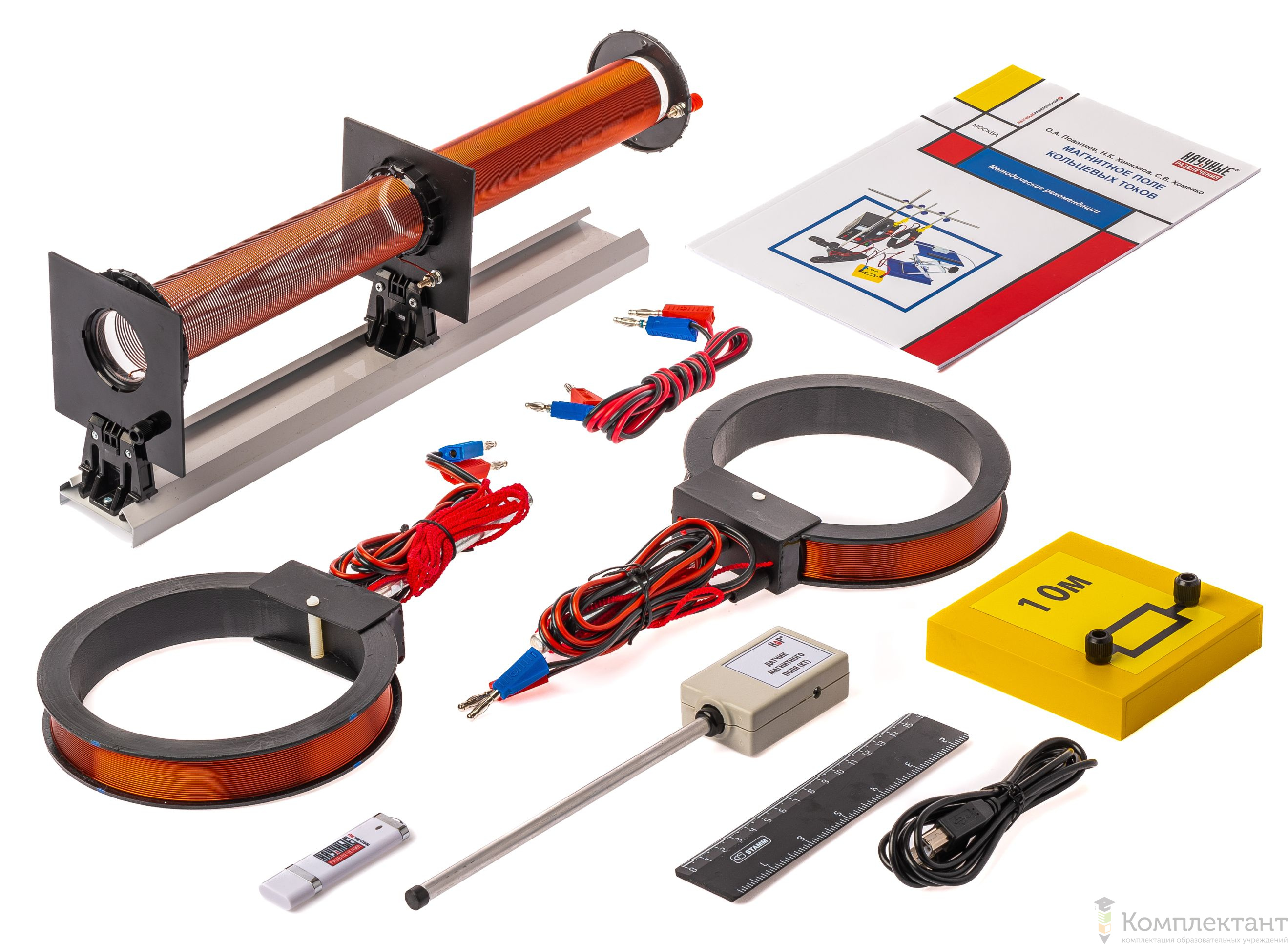 Набор демонстрационный предназначен для экспериментальной демонстрации магнитного поля, создаваемого электрическим током и силового взаимодействия между проводниками при протекании по ним электрического тока. Набор обеспечивает изучение основных понятий и закономерностей, изучаемых по темам «Магнитное поле тока» и сила Ампера, а также решение исследовательских задач, связанных со магнитным взаимодействием и структурой магнитного поля, создаваемого катушками различной геометрии.