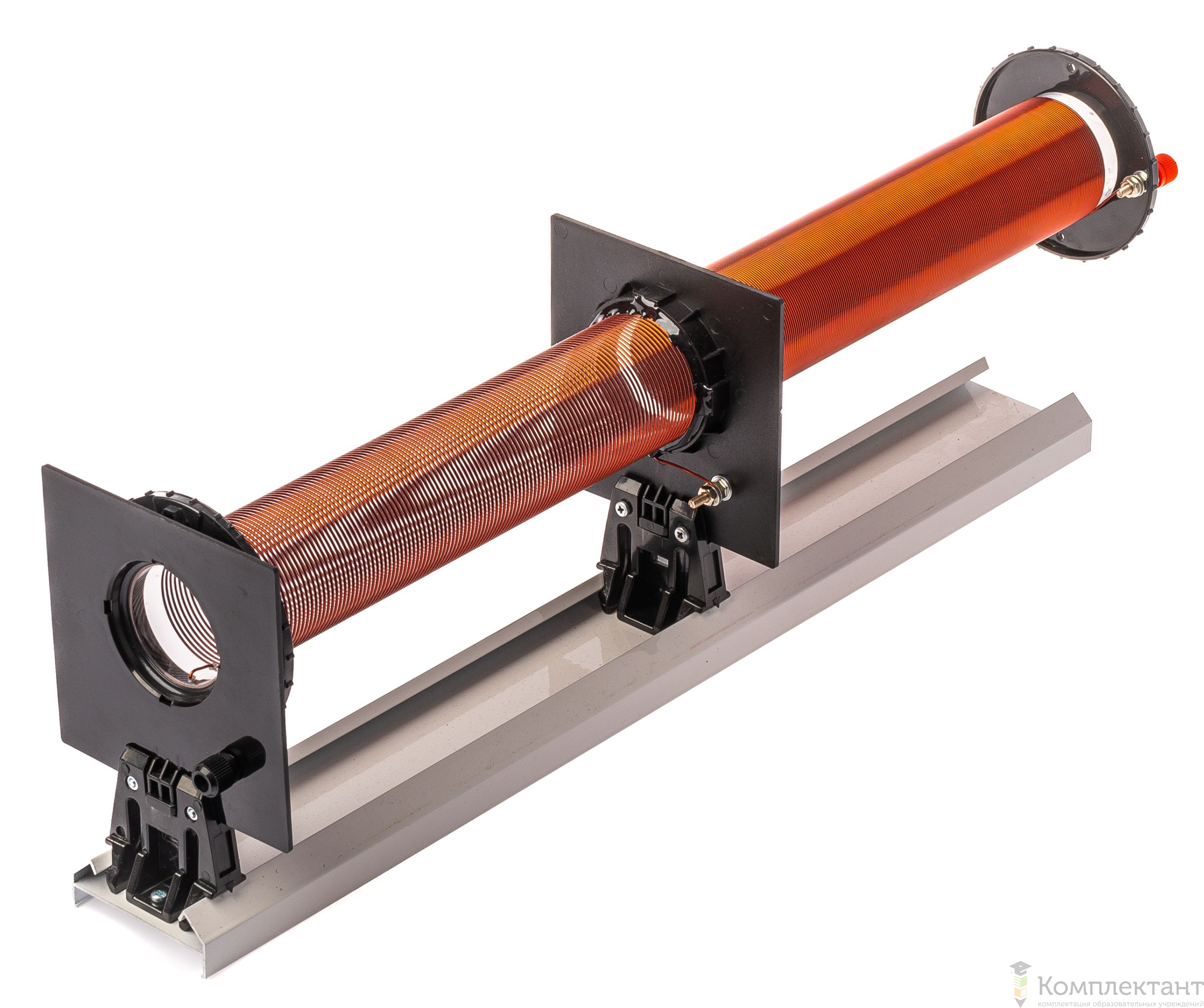 Набор демонстрационный обеспечивает изучение зависимости индукции магнитного поля от силы тока и плотности витков соленоида, изучения распределения магнитного поля плоской катушки и колец Гельмгольца, демонстрацию взаимодействия катушек с током одинаковой и противоположной направленности.