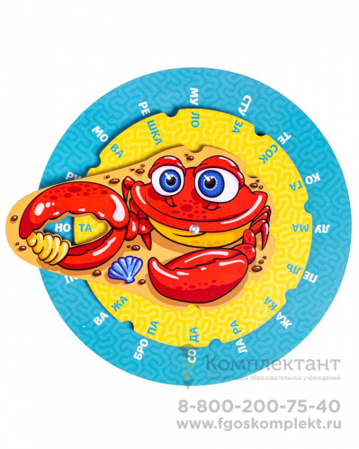 Игра состоит из двух кругов разного диаметра и краба с отверстием в клешне. Каждый круг подвижен и разделен на сектора со слогами. Задача ребенка соединить слога на кругах так, чтобы получилось несколько вариантов слов для каждого слога. Развивает навыки чтения, внимание, память и мышление.